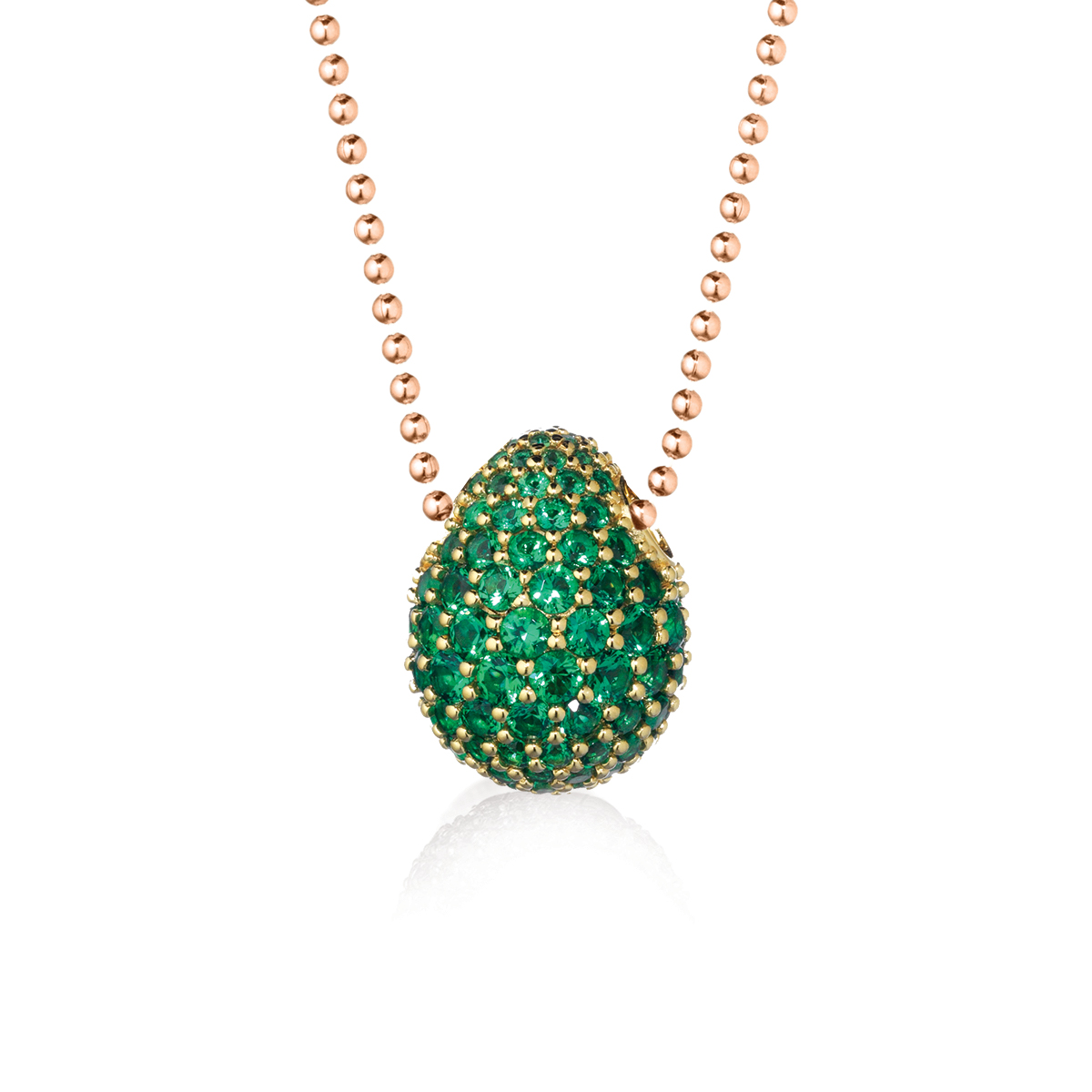 Collana in argento con ciondolo uovo tempestato di zirconi verde.