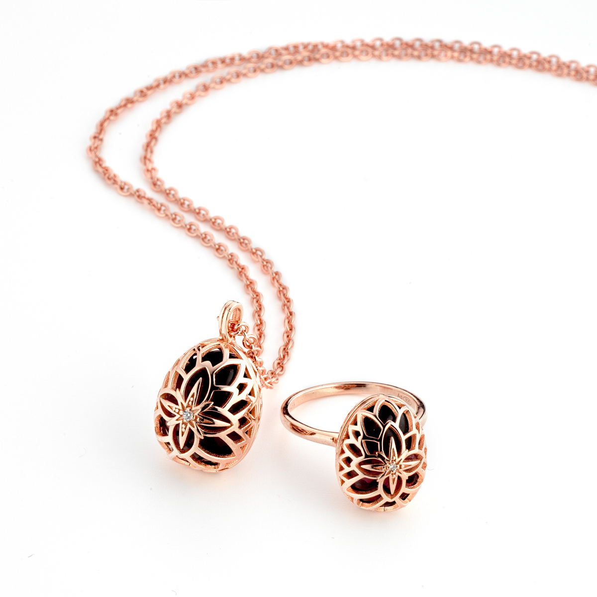 COLLANA WINDROSE IN ARGENTO ROSA E ONICE quantità