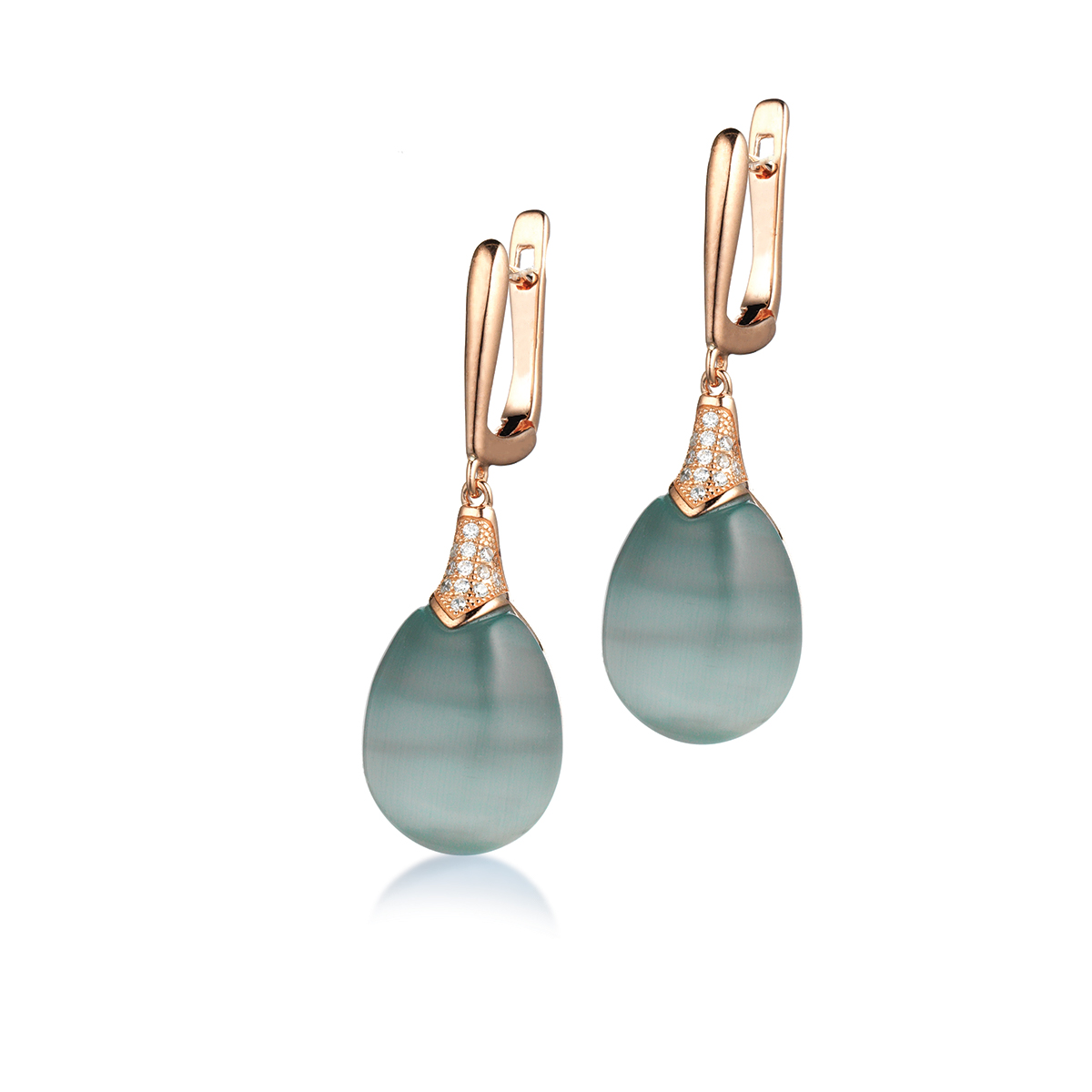 Paio di orecchini 18mm in argento rosa, quarzo cat eye e zirconi